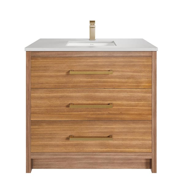 Curio 36 in. Single Sink Walnut Bath Vanity with White Carrara Quartz Top (Assembled)
