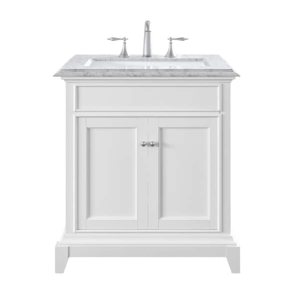 Elite Princeton 30 in. Single Sink White Bath Vanity with White Carrara Marble Top (Assembled)