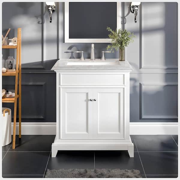 • 30 in. W x 24 in. D x 34 in. H vanity with carrara marble top