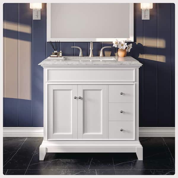 Elite Princeton 36 in. W x 24 in. D x 34 in. H Bath Vanity in White with White Carrara Marble Top with White Sink
