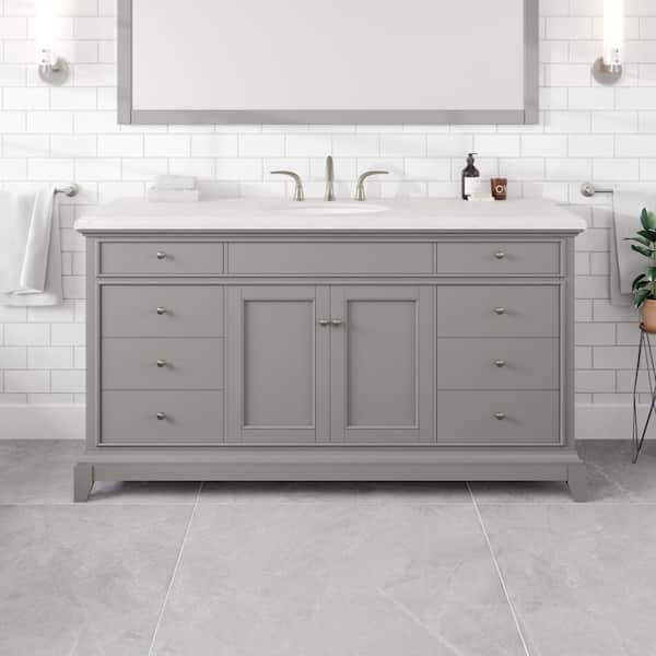 Elite Stamford 60 in. Single Sink Gray Bath Vanity with White Carrara Quartz Top (Assembled)