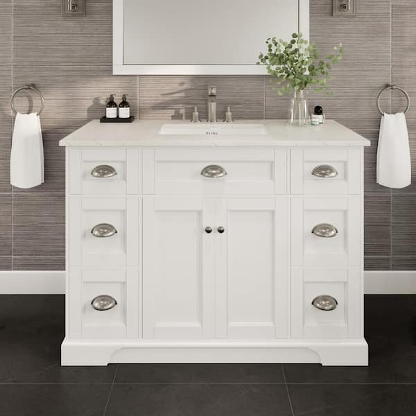 Epic 48 in. Single Sink White Bath Vanity with White Carrara Quartz Top (Assembled)
