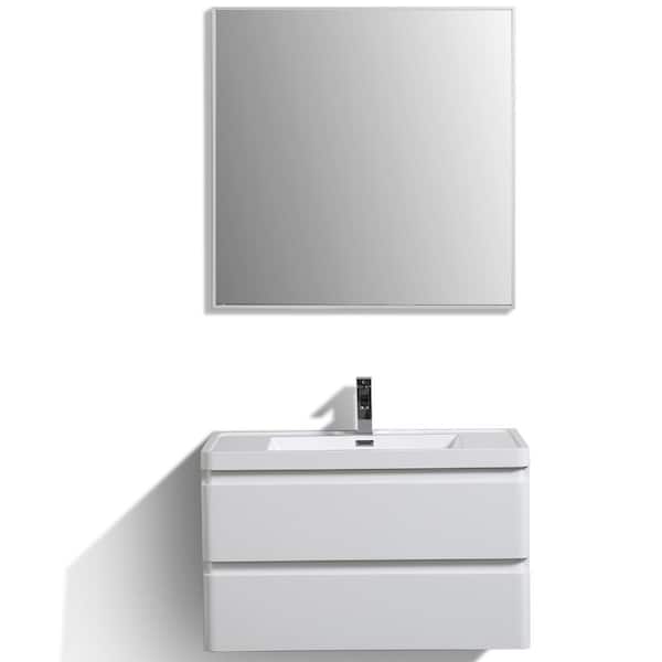 Glazzy 36 in. Single Sink Floating White Bath Vanity with White Acrylic Top (Assembled)