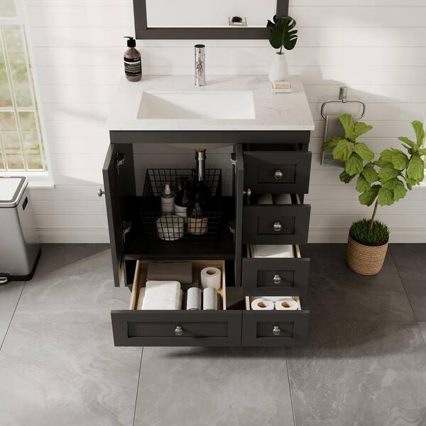 Happy 28 in. Single Sink Espresso Bath Vanity with White Carrara Quartz Top (Assembled)