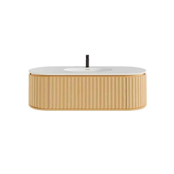 Haven 55 in. Single Sink Floating Natural Oak Bath Vanity with White Solid Surface Top (Assembled)