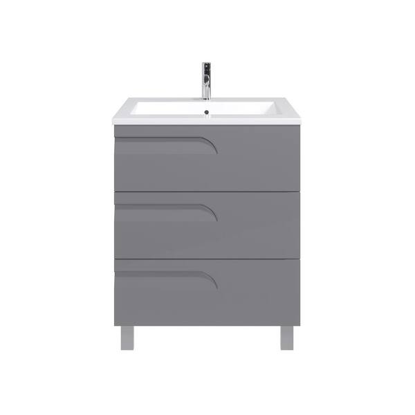 Joy 28 in. Single Sink Gray Bath Vanity with White Porcelain Top (Assembled)
