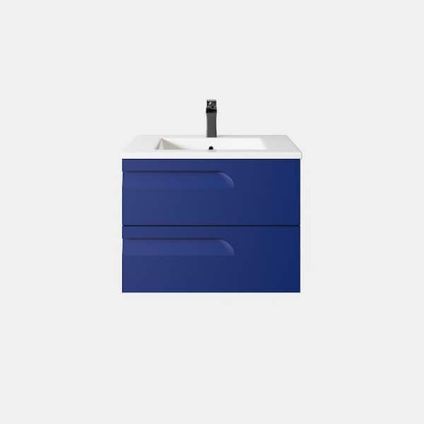 Joy 32 in. Single Sink Floating Blue Bath Vanity with White Porcelain Top (Assembled)