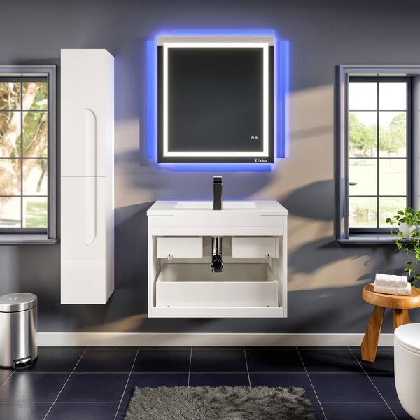 Joy 32 in. Single Sink Floating White Bath Vanity with White Porcelain Top (Assembled)