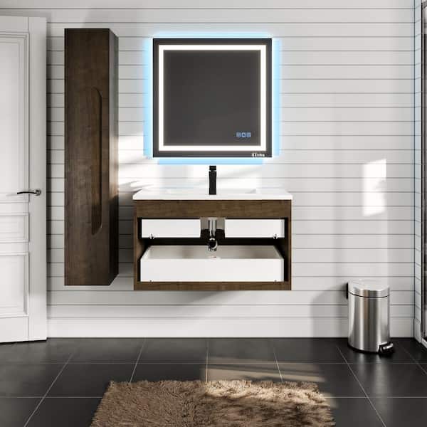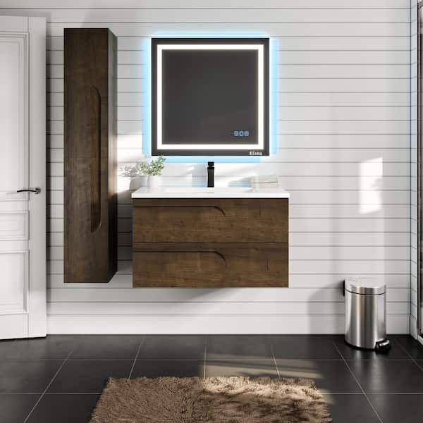 Joy 36 in. Single Sink Floating Rosewood Bath Vanity with White Porcelain Top (Assembled)