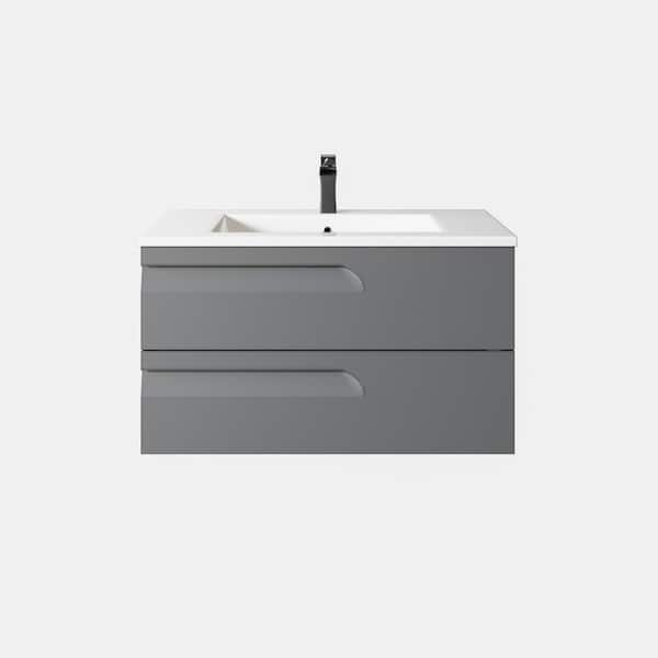 Joy 40 in. Single Sink Floating Gray Bath Vanity with White Porcelain Top (Assembled)