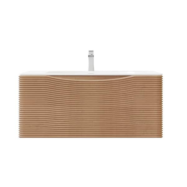 Leah 32 in. Single Sink Floating Medium Oak Bath Vanity with White Solid Surface Top (Assembled)
