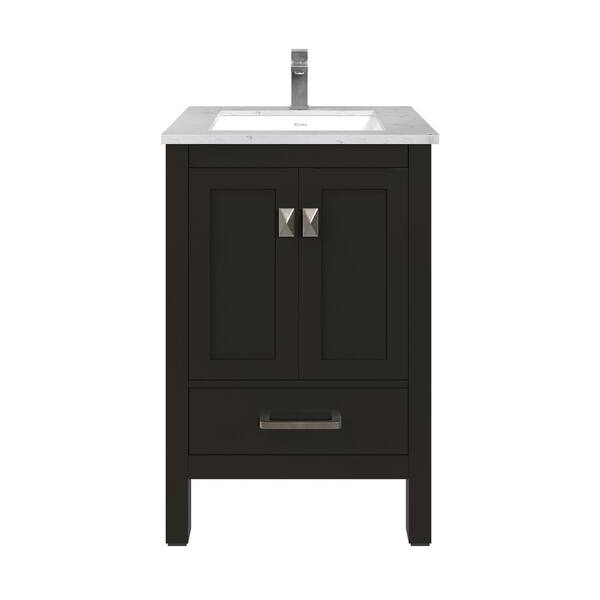 London 24 in. Single Sink Espresso Bath Vanity with White Carrara Quartz Top (Assembled)
