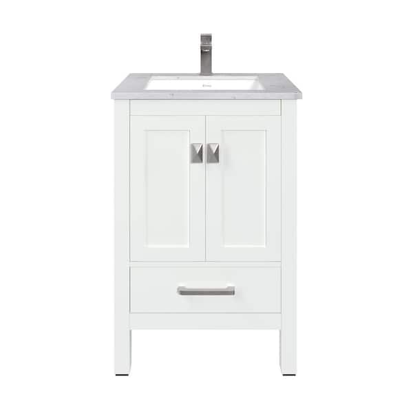 London 24 in. Single Sink White Bath Vanity with White Carrara Quartz Top (Assembled)