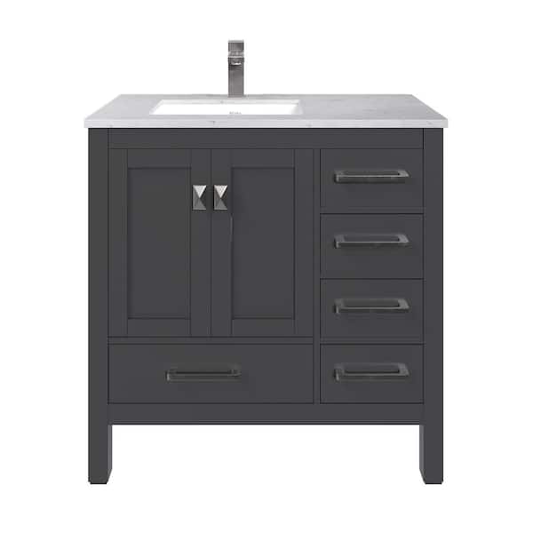 • 38 in. W x 18 in. D x 34 in. H vanity with carrara quartz top