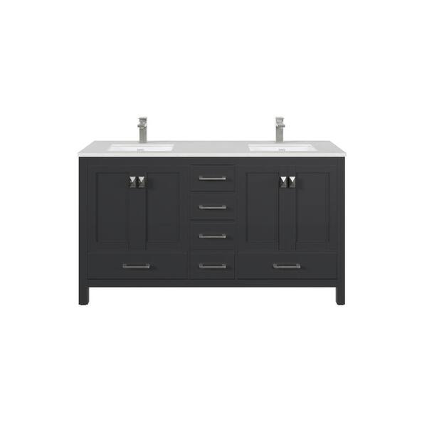 London 60 in. Double Sink Espresso Bath Vanity with White Carrara Quartz Top (Assembled)