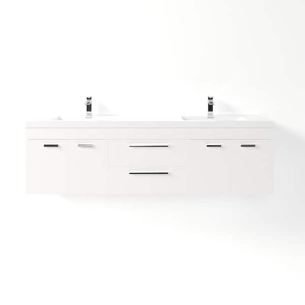 Lugano 72 in. Double Sink Floating White Bath Vanity with White Acrylic Top (Assembled)