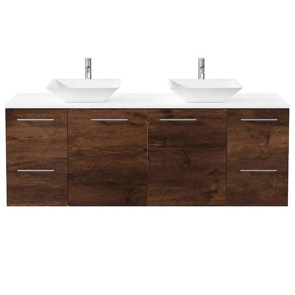 Luxurious 60 in. Double Sink Floating Rosewood Bath Vanity with White Quartz Top (Assembled)