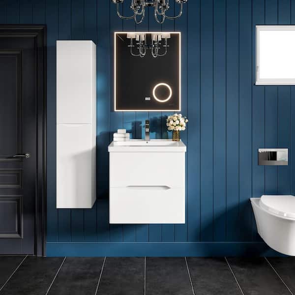 Maui 24 in. Single Sink Floating White Bath Vanity with White Acrylic Top (Assembled)