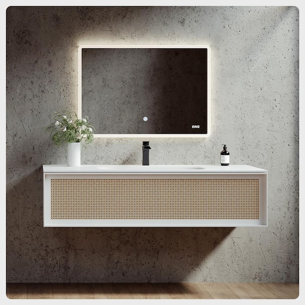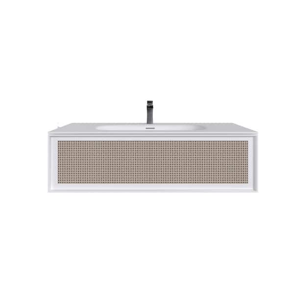 Nets 39 in. Single Sink Floating Natural Oak/White Bath Vanity with White Solid Surface Top (Assembled)