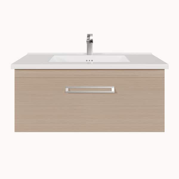 Orleans 38 in. Single Sink Floating Light Oak Bath Vanity with White Porcelain Top (Assembled)