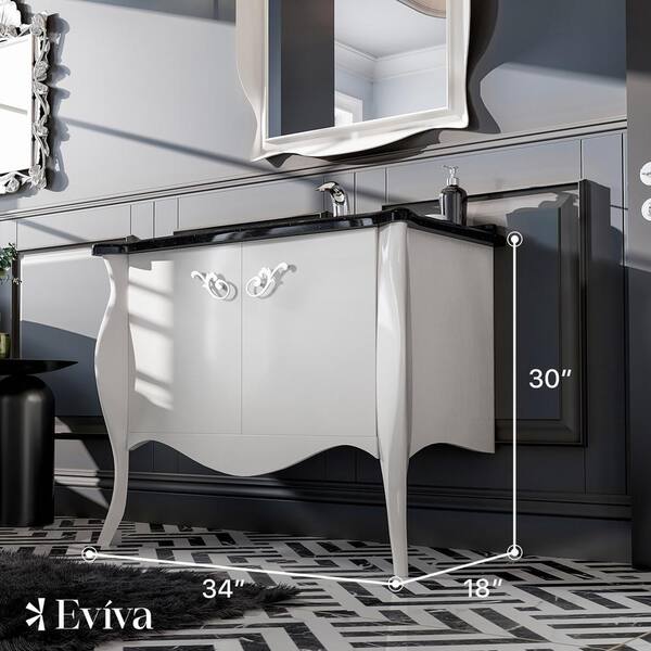 Ritz 34 in. Single Sink White Bath Vanity with Black Granite Top (Assembled)