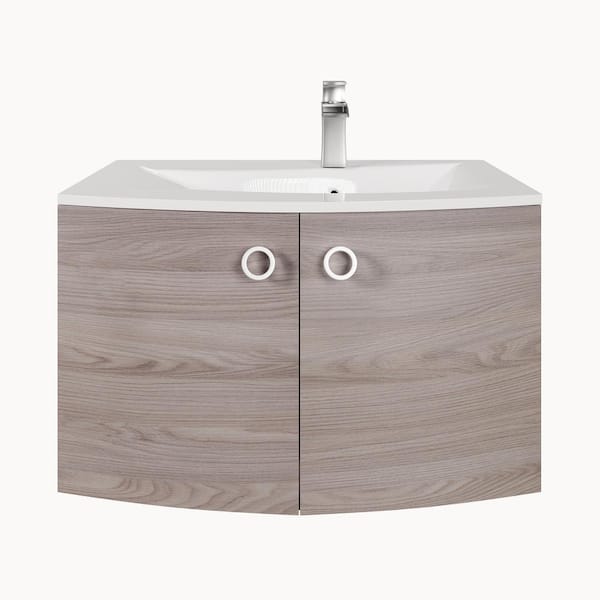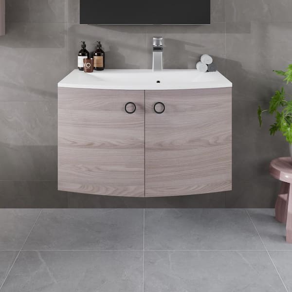 Romina 28 in. Single Sink Floating Gray Oak Bath Vanity with White Acrylic Top (Assembled)