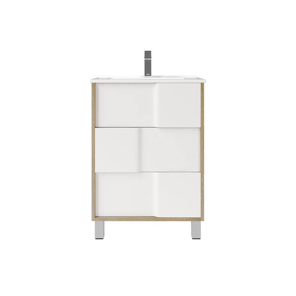 Toronto 24 in. Single Sink White & Oak Bath Vanity with White Porcelain Top (Assembled)