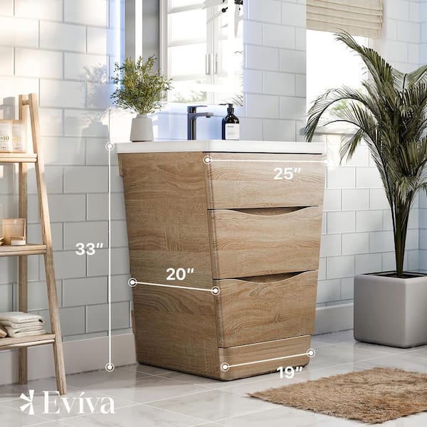Victoria 25 in. W x 20 in. D x 34 in. H Bathroom Vanity in White with White Acrylic Top with White Integrated Sink