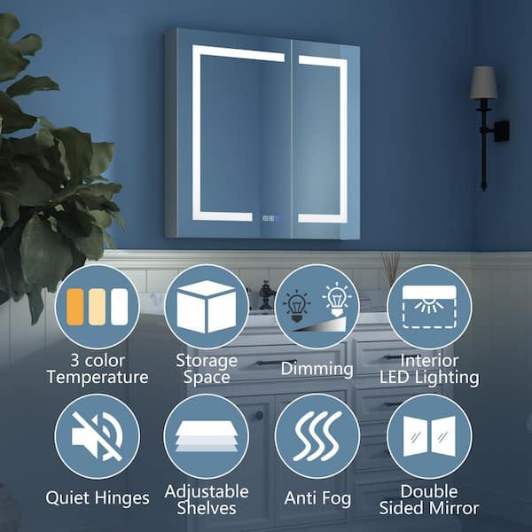 • 30 in. W x 30 in.H medicine cabinet with lighting and defogger
