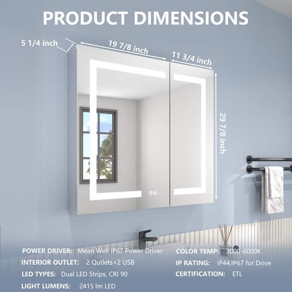 • 32 in. W x 30 in. H medicine cabinet with lighting & defogger