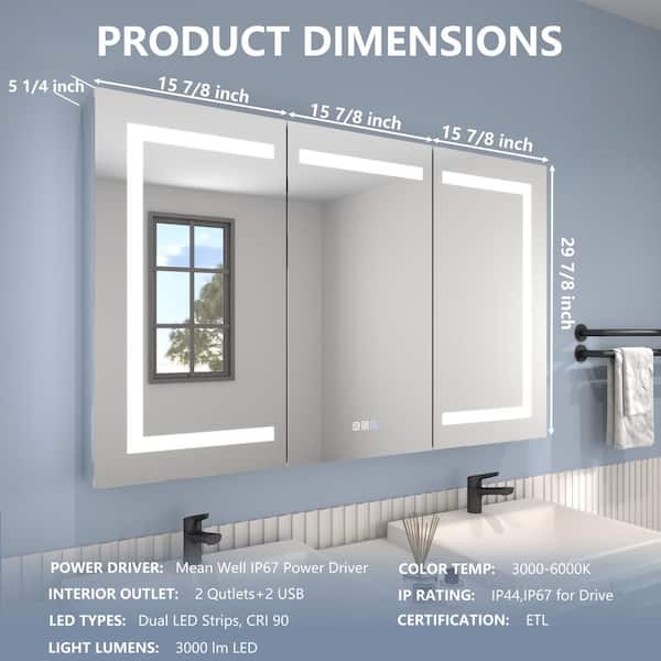 • 48 in. W x 30 in.H medicine cabinet with lighting and defogger