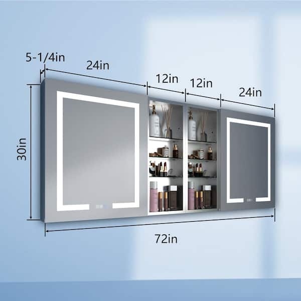 72 in. W x 30 in. H Rectangular Silver Aluminum Recessed/Surface Mount Medicine Cabinet with Mirror and LED
