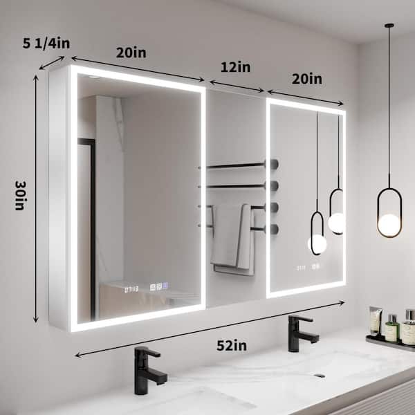 Aura 52 in.W x 30 in.H Rectangular Aluminum Recessed/Surface Mount Dual Swing Medicine Cabinet with Mirror LED
