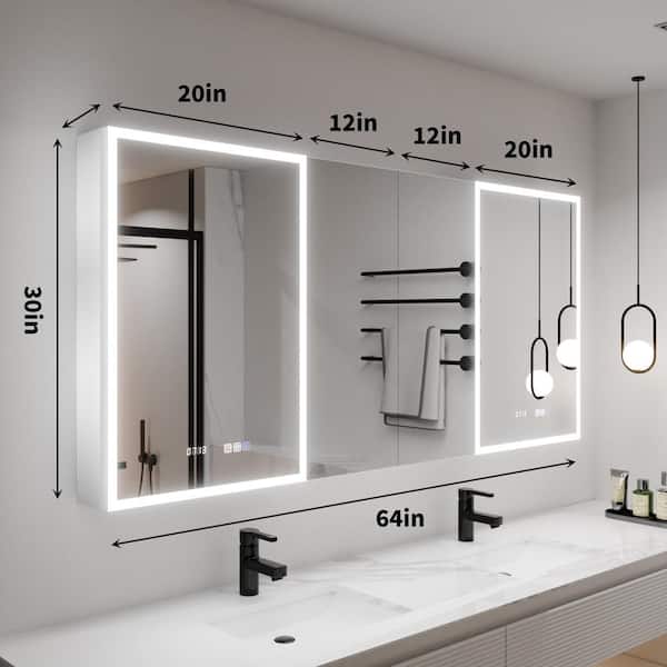 Aura 64 in.W x 30 in.H Rectangular Aluminum Recessed/Surface Mount Dual Swing Medicine Cabinet with Mirror LED
