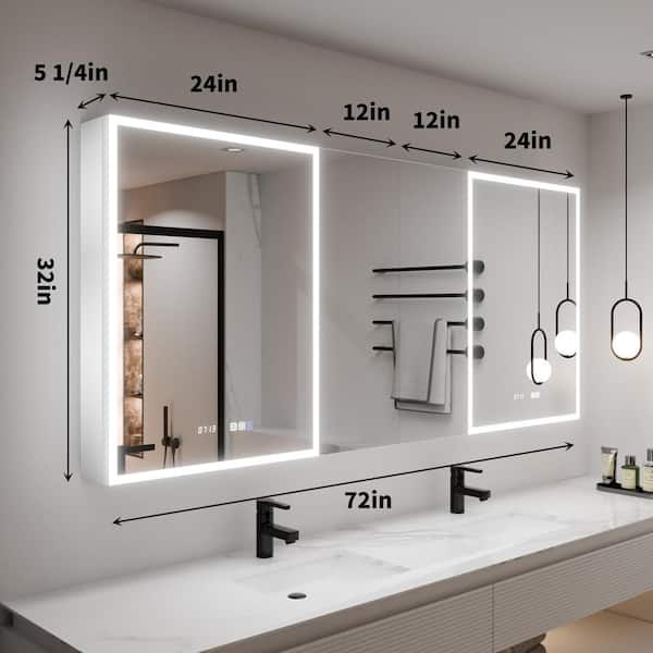 Aura 72 in.W x 32 in.H Rectangular Aluminum Recessed/Surface Mount Dual Swing Medicine Cabinet with Mirror LED