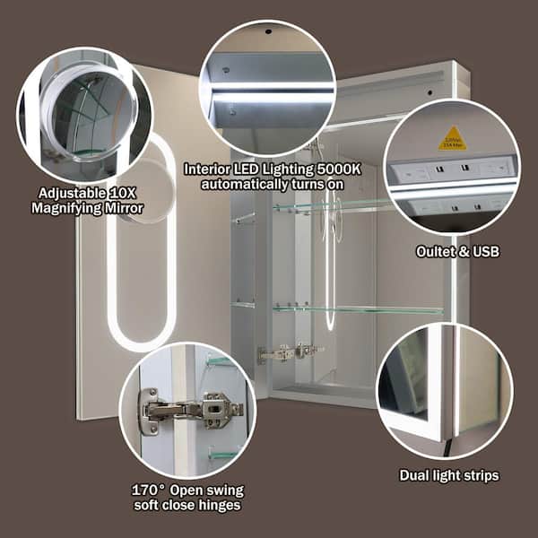AuraX 20 in. W x 32 in. H Rectangular Recessed/Surface Mount Left Medicine Cabinet with Mirror, Backlit and Front LED