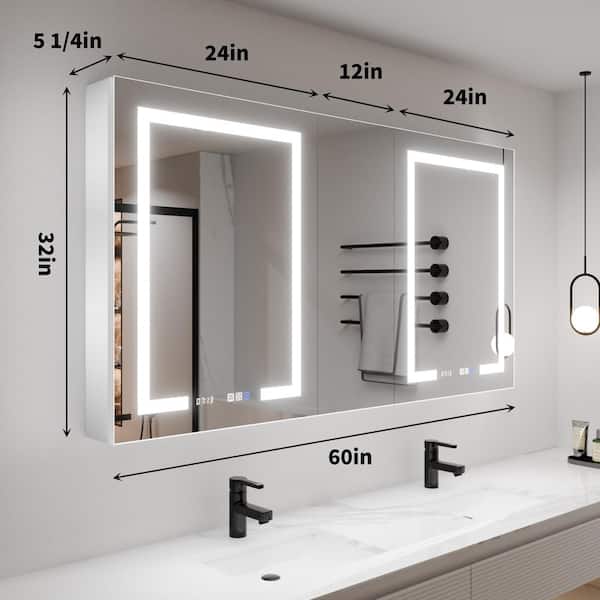Glow 60 in.W x 32 in.H Rectangular Aluminum Recessed/Surface Mount Dual Swing Medicine Cabinet with Mirror LED