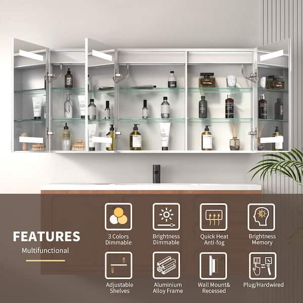 Luna 48 in. W x 24 in. H Rectangular Sliver Aluminum Recessed/Surface Mount Medicine Cabinet with Mirror, LED Lighting