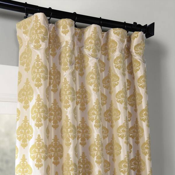 Beatrice Champagne Beige Flocked Faux Silk Curtain - 50 in. W x 96 in. L (1 Panel)