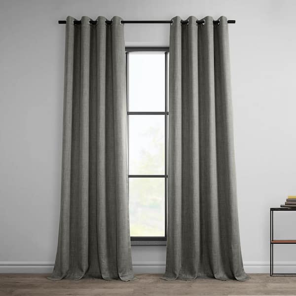 Blazer Grey Gray Faux Linen Grommet Room Darkening Curtain - 50 in. W x 120 in. L (1 Panel)