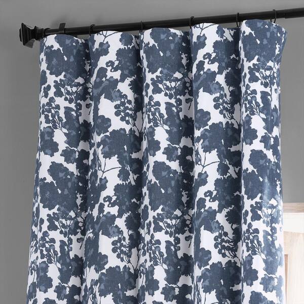 Fleur Blue Printed Cotton Blackout Curtain - 50 in. W x 108 in. L (1 Panel)