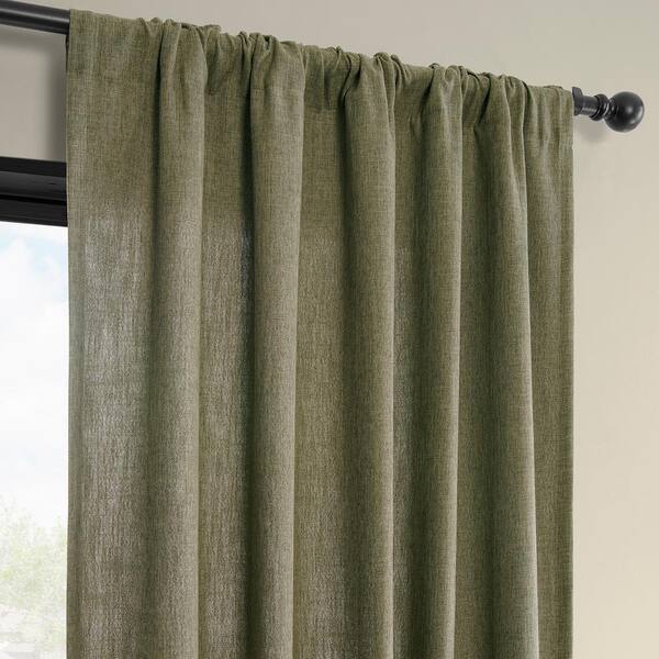 Khaki Green Simply Faux Linen Solid 50 in. W x 120 in. L Rod Pocket Light Filtering Curtain Pair (Set of 2)