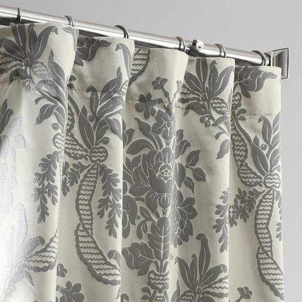 Magdelena Silver/Blue Jacquard Faux Silk Rod Pocket Room Darkening Curtain - 50 in. W x 96 in. L Single Window Panel