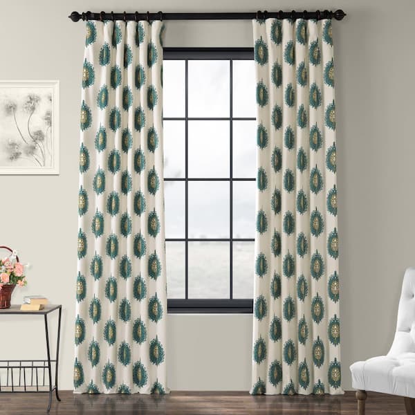 Mayan Teal Damask Rod Pocket Room Darkening Curtain - 50 in. W x 96 in. L (1 Panel)