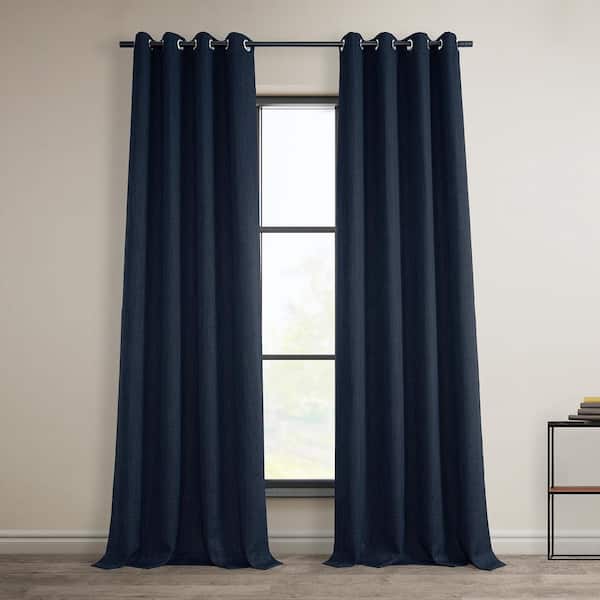 Nightfall Navy Blue Faux Linen Grommet Room Darkening Curtain - 50 in. W x 96 in. L (1 Panel)