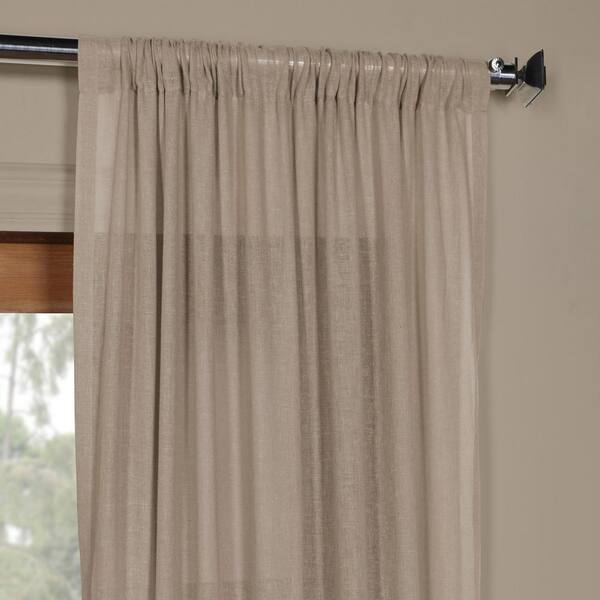 Soft Taupe Faux Linen Rod Pocket Sheer Curtain - 50 in. W x 84 in. L