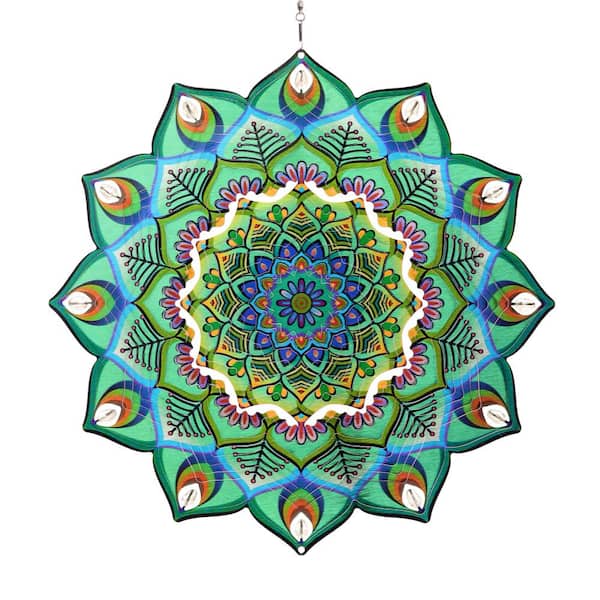 12 in. Laser Cut Green with Beaded Details, Metal Spinner