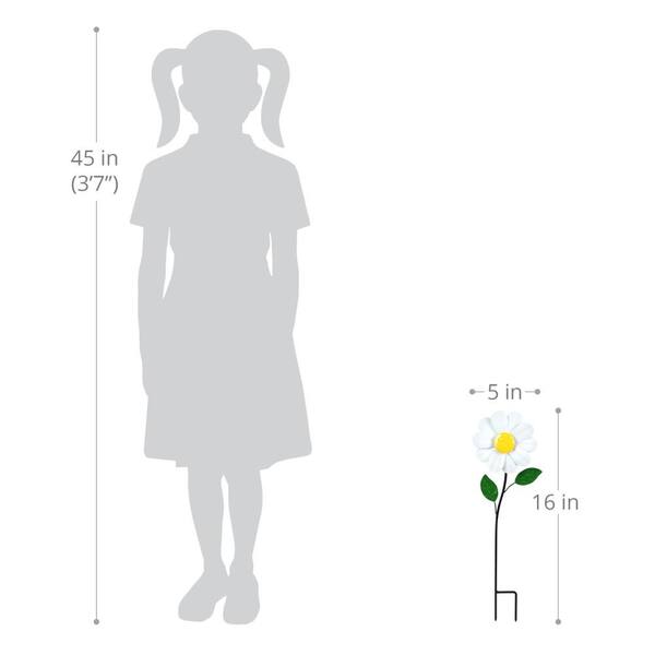 5 in. W Mini Kinetic Daisy 1.33 ft. White Metal Garden Stake