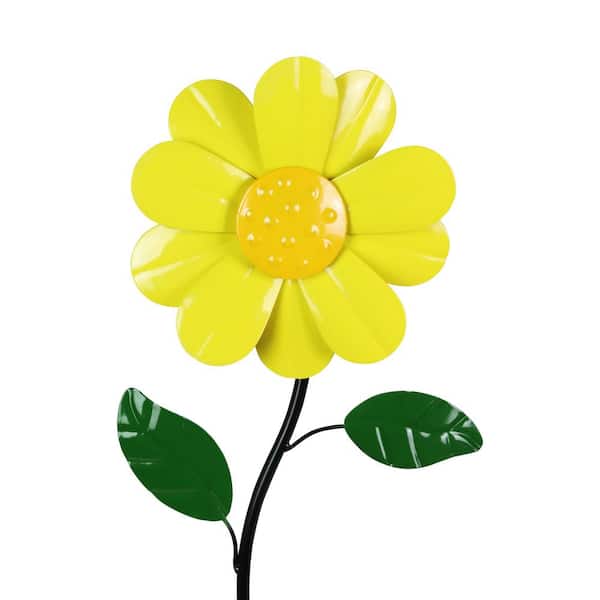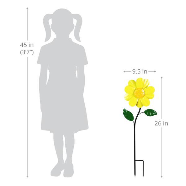 9 in. W Kinetic Daisy 2.17 ft. Yellow Metal Garden Stake