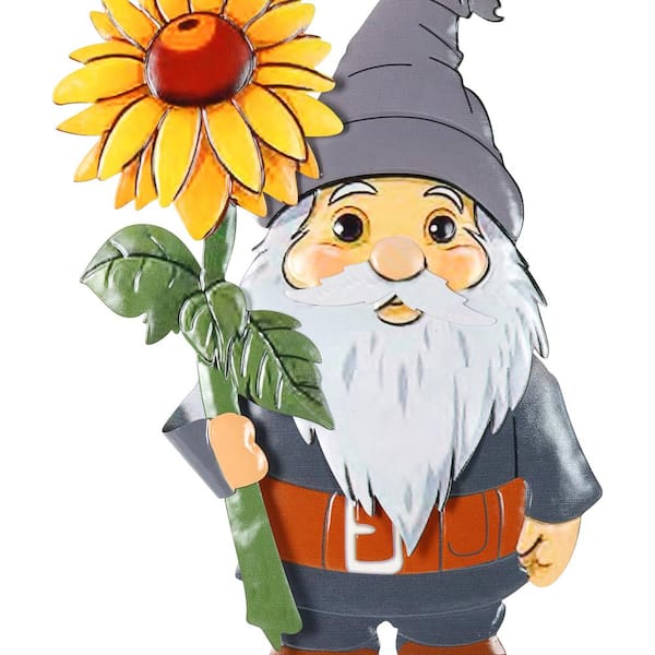Colorful Gnome Hand Painted with Sunflower 2.02 ft. MultiColor Metal Garden Stake